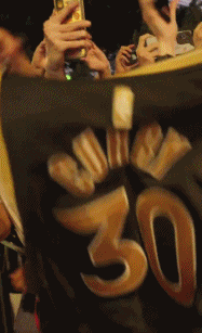 球迷举着库里的球衣,高呼MVP,现场氛围火爆。