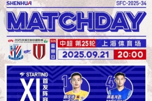 2025华润饮料中超联赛第25轮 上海申花 vs 成都蓉城 首发名单