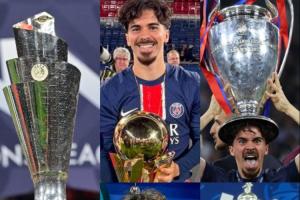 比赛最后时刻换下受伤C罗的G-拉莫斯,也随队友在巴黎和葡萄牙度过了完美的一个赛季,一起获得了欧冠、法甲、法国杯、法超杯、欧国联5座冠军奖杯。